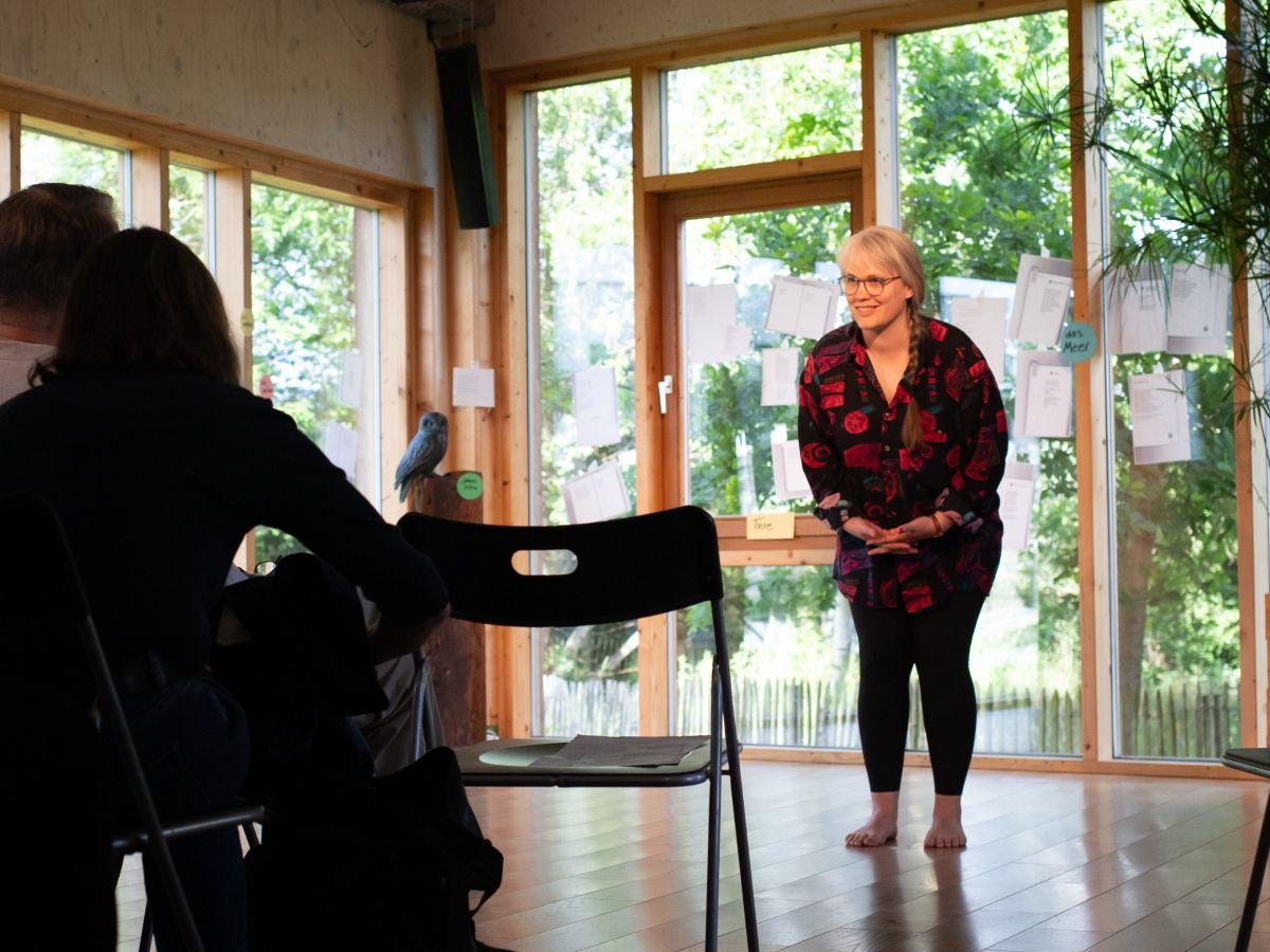 - Sprechen ist auch Verbindung zu uns selbst: Wir verfeinern unsere Wahrnehmung für Körper, Atem und Stimme, nehmen unsere Ideen und Empfindungen ernst und sprechen das aus, was wirklich gesagt werden will.